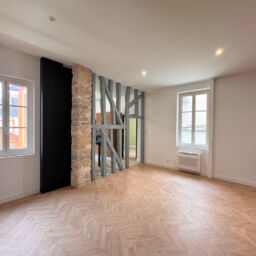 La configuration des lieux offre de nombreuses possibilités d’aménagement : il est tout à fait envisageable de créer deux chambres, une grande salle de bains et un espace de vie ouvert, chaleureux et moderne, avec cuisine américaine et poutres apparentes.