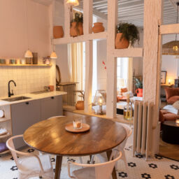 À l’étage, l’espace nuit se compose d’un petit salon de lecture & de trois chambres, dont l’une dispose d’un dressing, ainsi que d’une salle d’eau, formant un ensemble harmonieux et intimiste.